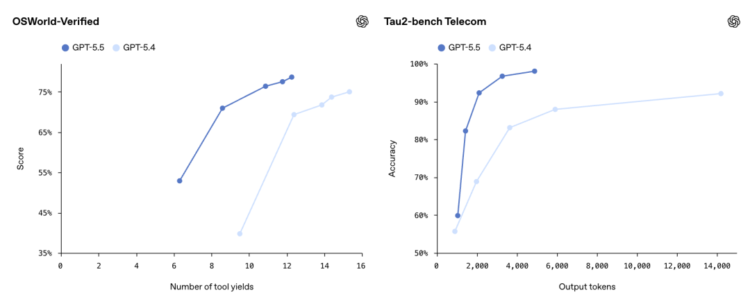 OpenAI给出的解释是token效率提升。同样的Codex任务,GPT-5.5用的token比GPT-5.4明显更少。